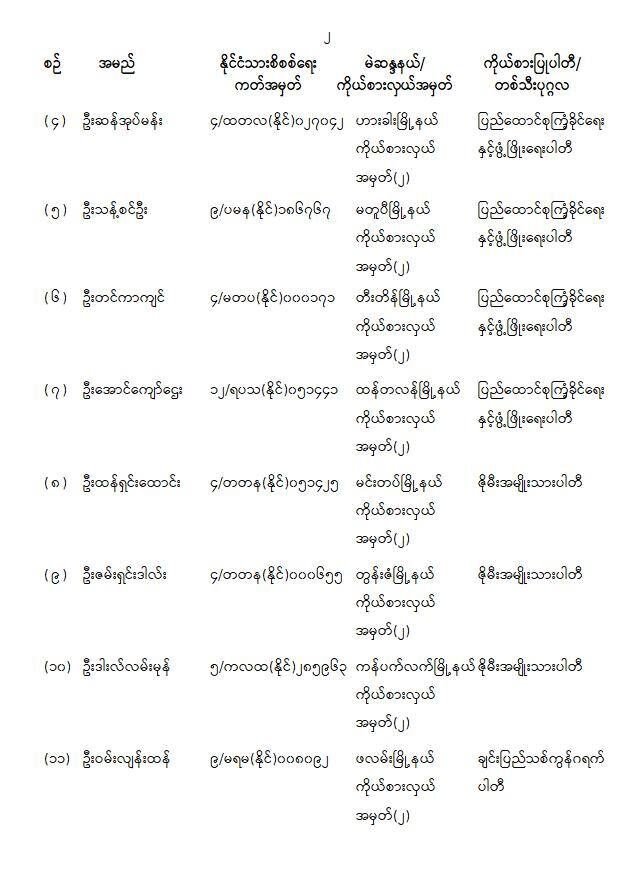 ချင်းပြည်နယ်ရှိ မဲဆန္ဒနယ်များမှ အမျိုးသားလွှတ်တော်ကိုယ်စားလှယ်အတွက် ကိုယ်စားလှယ် ၈ ဦးနှင့် ချင်းပြည်နယ် လွှတ်တော်အတွက် ကိုယ်စားလှယ် ၁၁ ဦးတို့ကို အနိုင်ရလွှတ်တော်ကိုယ်စားလှယ်များဟူ၍ အာဏာသိမ်းစစ်ကော်မရှင်၏ လက်အောက်ခံ ရွေးကောက်ပွဲကော်မရှင်က ကြေညာသည်။