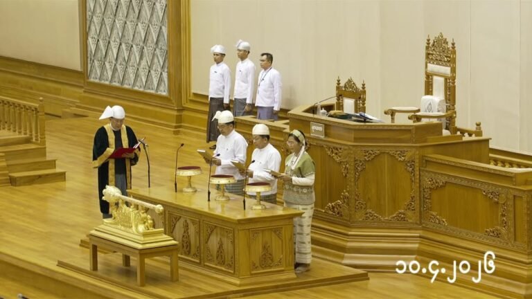 ယနေ့ ဧပြီလ ၁၀ ရက်၊ ပြည်ထောင်စုလွှတ်တော်တွင် ကျင်းပသည့် အာဏာသိမ်းစစ်ခေါင်းဆောင် မင်းအောင်လှိုင်၏ သမ္မတ ရာထူးရယူခြင်းနှင့် သမ္မတ၊ ဒုသမ္မတများ၊ စစ်အစိုးရအဖွဲ့ ဝန်ကြီးများနှင့် အဖွဲ့အစည်းများ ကျမ်းသစ္စာကျိန်ဆိုခြင်း အခမ်းအနားတွင် စစ်ခေါင်းဆောင်က သမ္မတမိန်းခွန်းမှာ ယင်းသို့ ထည့်သွင်းပြောကြားခြင်းဖြစ်သည်။
