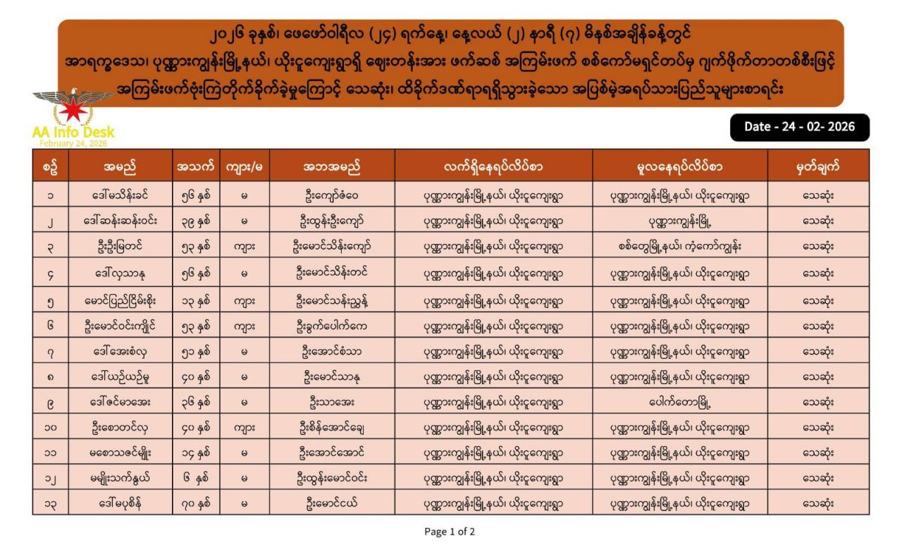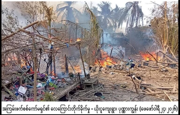 ULA/AA သိမ်းပိုက်ထိန်းချုပ်ထားသော ရခိုင်ပြည်နယ်ထဲက မြို့နယ်များကို စစ်ကော်မရှင်တပ်က ၂၀၂၆ ခုနှစ်အတွင်း လေကြောင်းတိုက်ခိုက်မှုများ ပြုလုပ်ရာတွင် မြောက်ဦး၊ ကျောက်တော်နှင့် ကျောက်ဖြူဖြစ်စဉ်များတွင် အရပ်သားပြည်သူများ အစုအလိုက်အပြုံလိုက်သေဆုံးမှု ဖြစ်ပွားခဲ့ကြောင်း သိရသည်။