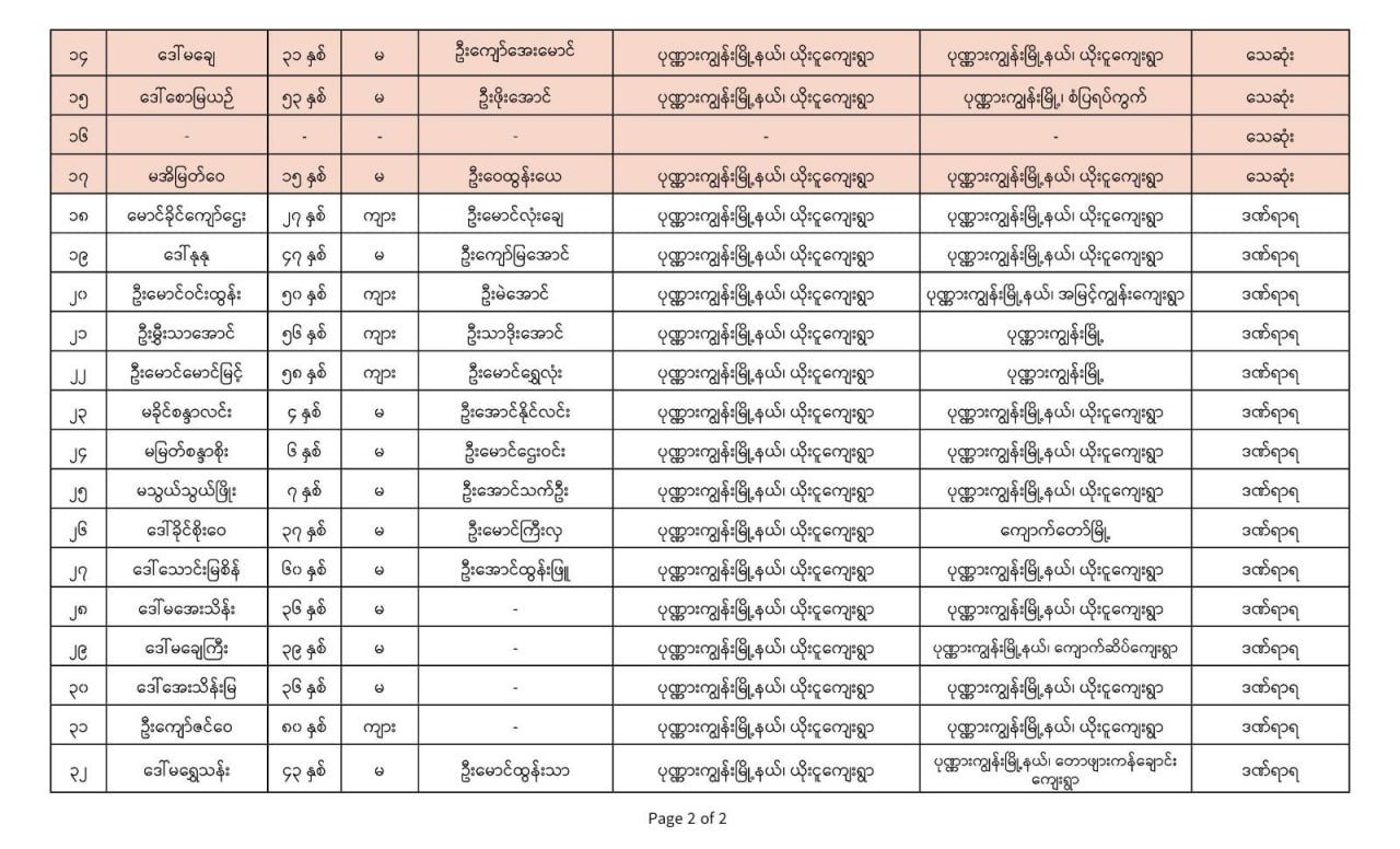 ယနေ့တွင် ထိခိုက်ဒဏ်ရာရရှိသူများထဲက အမျိုးသမီး ၁ ဦးထပ်မံ သေဆုံးသည်ဟု ဒေသတွင်း သတင်းရင်းမြစ်များထံမှ သိရသည်။