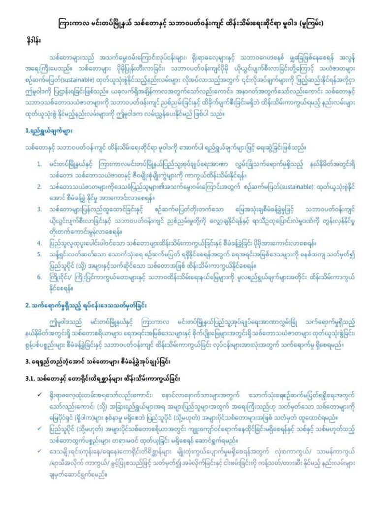 ချင်းပြည်နယ်တောင်ပိုင်း၊ မင်းတပ်မြို့နယ်တွင် ကျင့်သုံးမည့် သစ်တောမူဝါဒ (မူကြမ်း) ကို ရေးဆွဲနေပြီး မူဝါဒ အချောသတ် အတည်ပြုနိုင်ရေးအတွက် မင်းတပ်မြို့နယ်မှ ပြည်သူများအနေဖြင့် အကြံပြုချက်များ ပေးပို့နိုင်ရန် မင်တပ်မြို့နယ် ပြည်သူ့အုပ်ချုပ်ရေးအဖွဲ့က ဇွန်လ ၂၆ ရက်က ထုတ်ပြန်သည်။