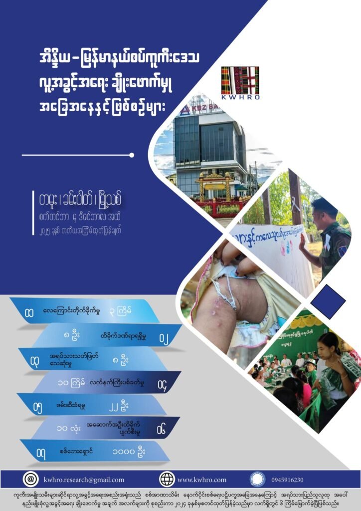ကူကီးအမျိုးသမီးများ ဆိုင်ရာလူ့အခွင့်အရေးအစည်းအရုံးသည် အိန္ဒိယ-မြန်မာနယ်စပ် တမူးခရိုင်အတွင်း မြင့်တက်နေ သည့် တိုက်ပွဲများအကြား ဒေသခံပြည်သူများကြုံတွေ့နေရသော လူ့အခွင့်အရေးချိုးဖောက်မှု၊ ဒေသအခြေအနေများ နှင့် အထူးသဖြင့် အမျိုးသမီးများကြုံတွေ့နေရသော အခက်အခဲများတင်ပြထားသည့် ၄ လတစ်ကြိမ်ထုတ်ဝေသော အစီရင်ခံစာကို ဇန်နဝါရီ ၁၀ ရက်နေ့ကထုတ်ပြန်ခဲ့သည်။