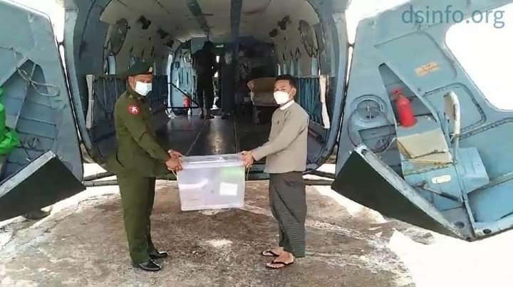 Lin Kyaw, the secretary of Chin State’s election commission, said that the military was employed to deliver the equipment from Matupi, Chin State, and Sittwe, Rakhine State, to Paletwa by air to stop it from being damaged.