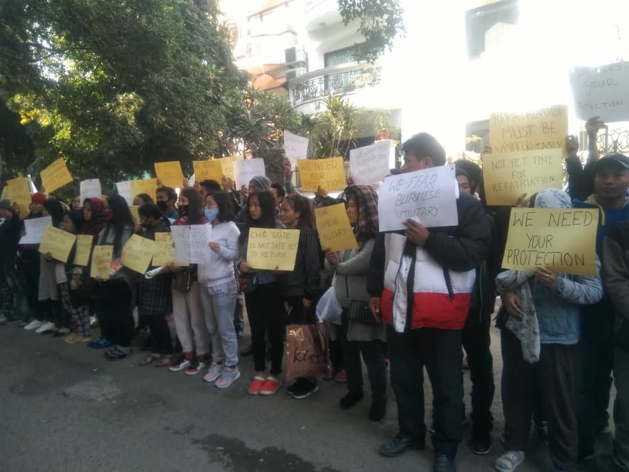 The protesters were demanding a change to the UNHCR’s 2018 decision on Chin refugee affairs to no longer grant refugee status or resettlement rights to those from Chin State, declaring the area to no longer be an active conflict zone.